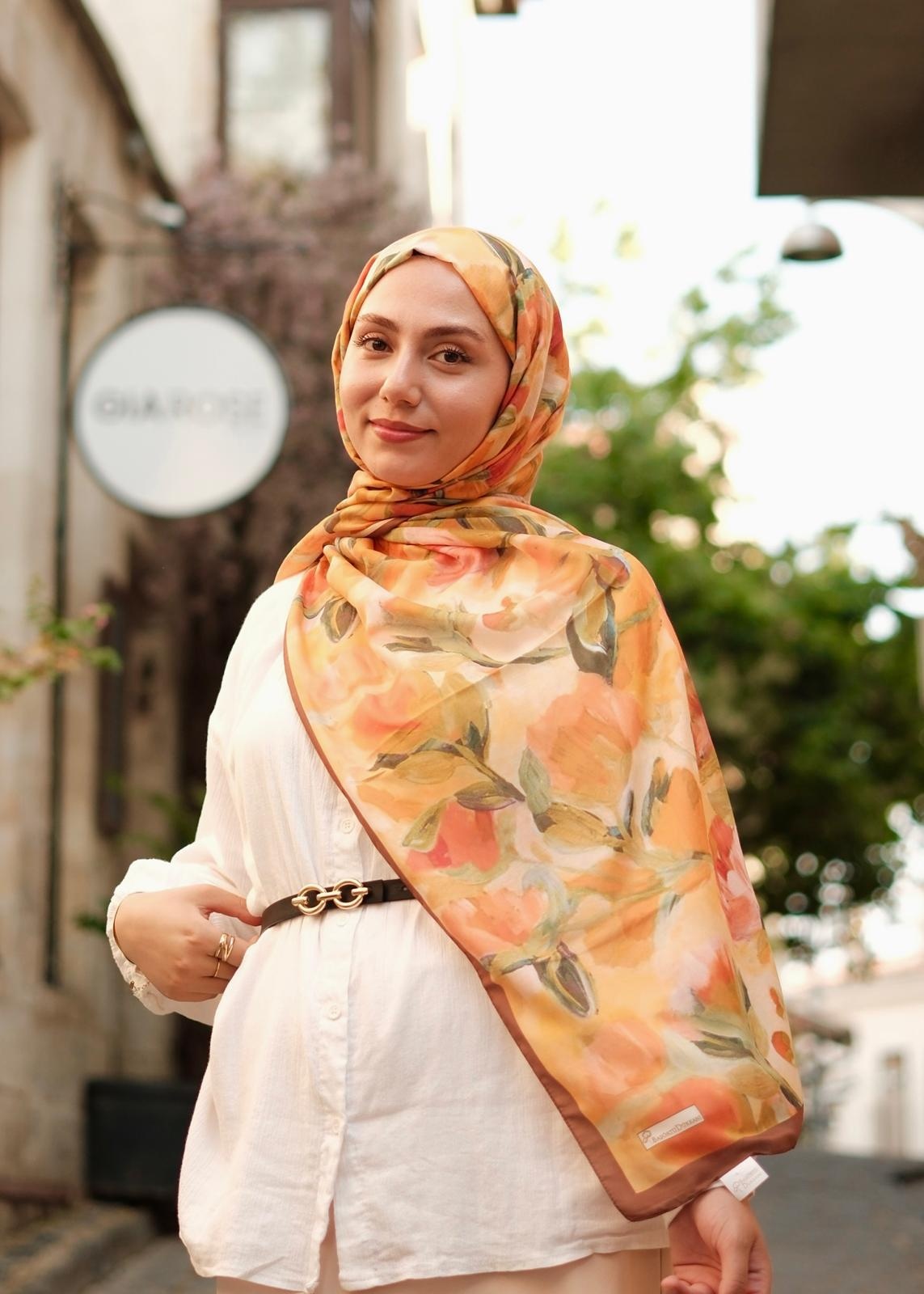 FLORAL BRUSH ŞAL - KAHVE ORANJ