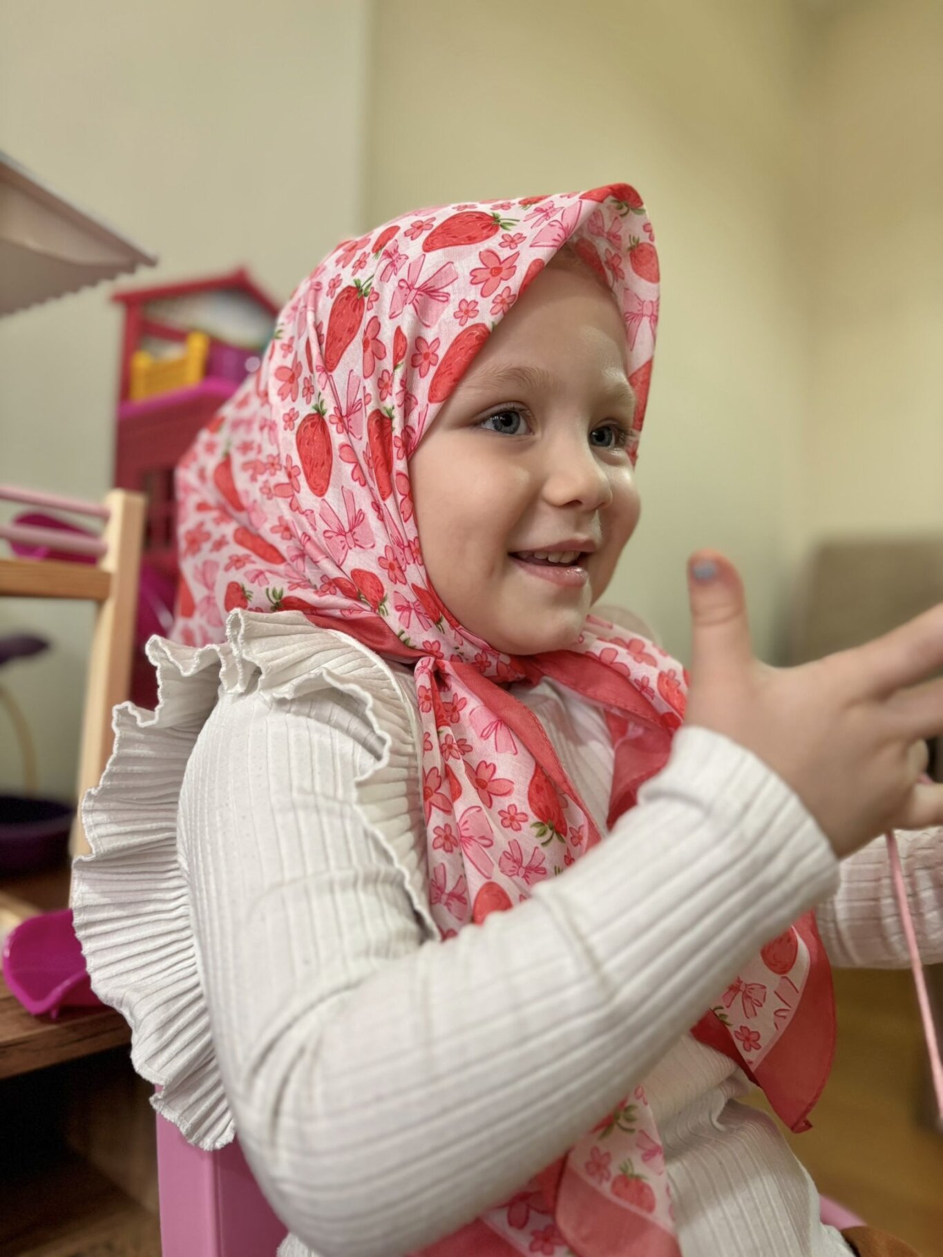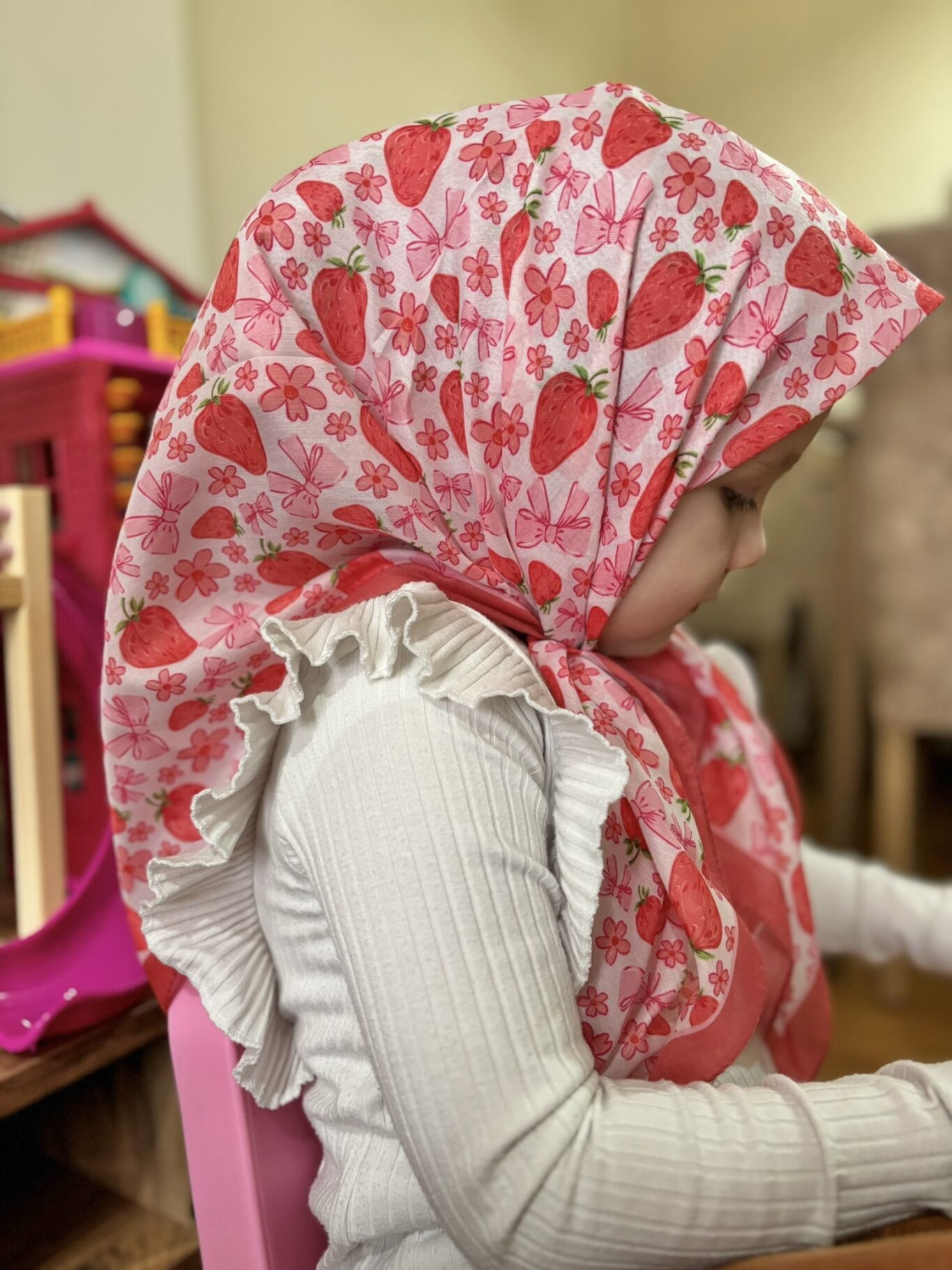 KİDS KURDELE ÇİLEK DESEN EŞARP