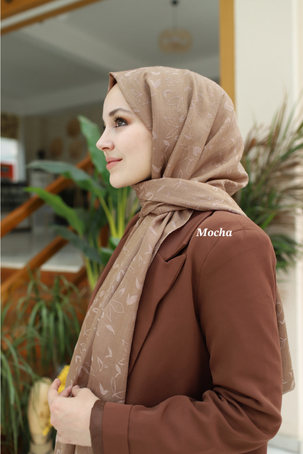 PAMUK VUAL YAPRAK DESEN JAKAR ŞAL - MOCHA