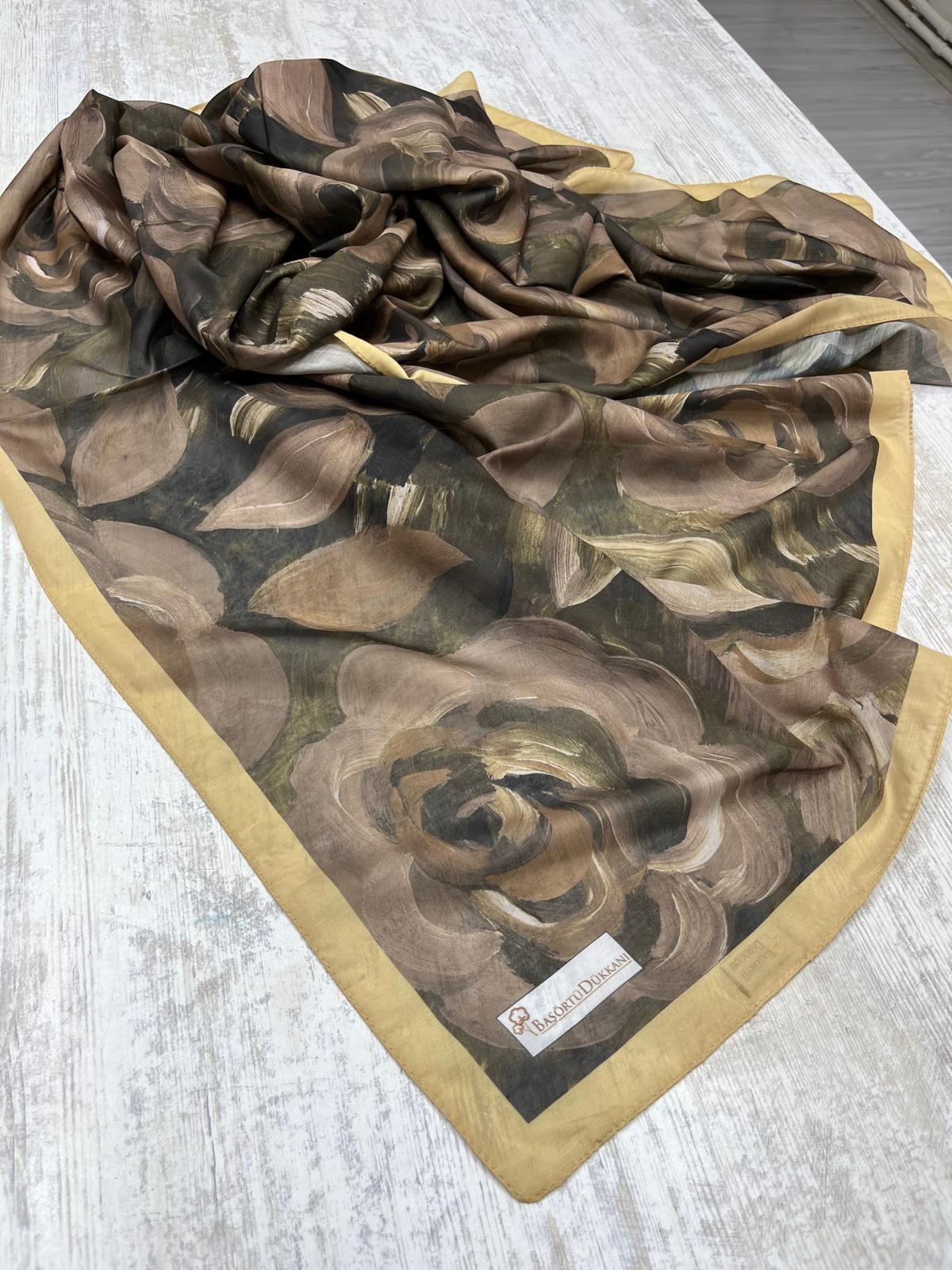 ROSARA ŞAL - KAHVE YEŞİL HARDAL