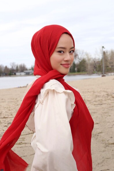 RETRO DESEN EŞARP - KIRMIZI